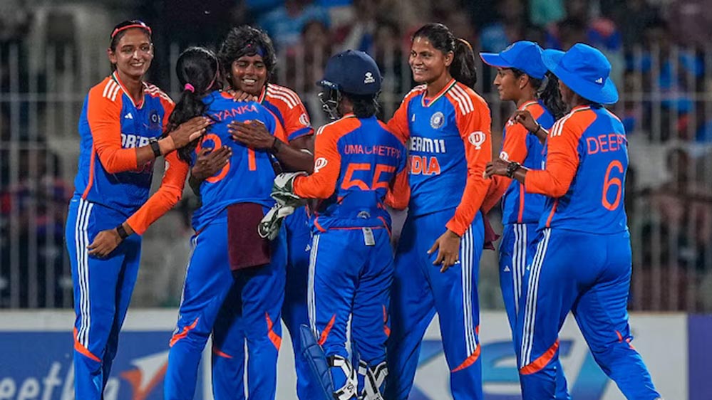 भारत का फुल स्क्वॉड: शेफाली वर्मा, स्मृति मंधाना, अमनजोत कौर, हरमनप्रीत कौर (कप्तान), जेमिमा रोड्रिग्स, दीप्ति शर्मा, ऋचा घोष (विकेटकीपर), राधा यादव, क्रांति गौड़, श्री चरणी, रेणुका सिंह ठाकुर, स्नेह राणा, अरुंधति रेड्डी, हरलीन देओल, उमा छेत्री (विकेटकीपर).