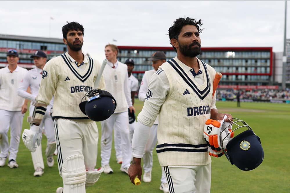 भारत और इंग्लैंड के बीच मैनचेस्टर के ओल्ड ट्रैफर्ड मैदान पर खेला गया टेस्ट मैच ड्रॉ रहा. इस मुकाबले के पांचवें दिन (27 जुलाई) रवींद्र जडेजा और वॉशिंगटन सुंदर ने यादगार बैटिंग करके इंग्लैंड को जीत से वंचित कर दिया. जडेजा 107 और सुंदर 101 रन पर नॉटआउट लौटे. दोनों के बीच पांचवें विकेट के लिए 203 रनों की पार्टनरशिप हुई.